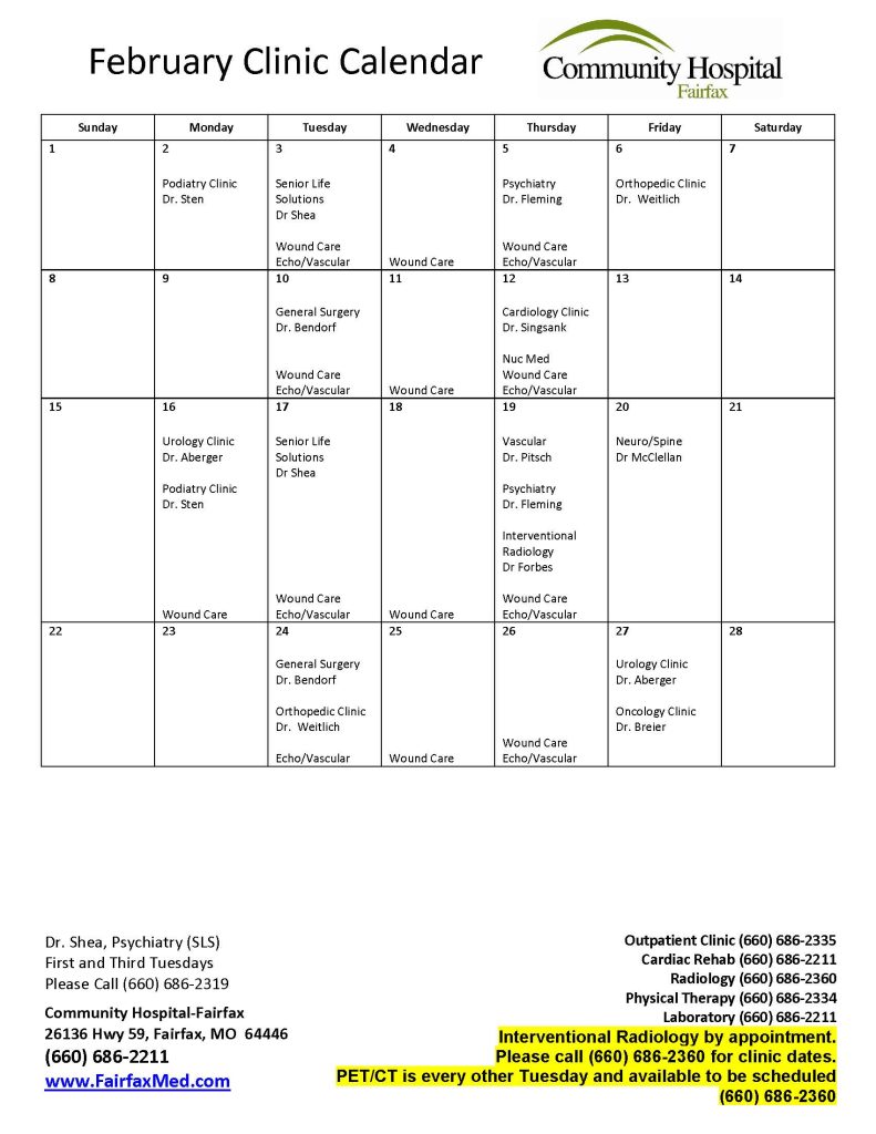 Specialty Clinic Calendar
